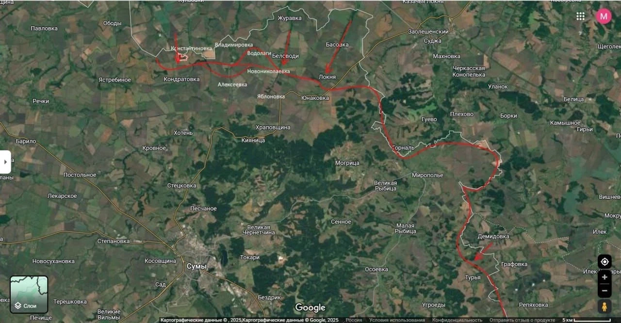 На Сумском направлении с каждым днём возрастает активность Вооружённых сил Российской Федерации (ВС РФ). Украинские войска пытаются сдерживать атаки ВС России, но вместо этого фиксируются ежедневные тактические успехи, которые в дальнейшем превращаются в занятие того или иного населённого пункта.