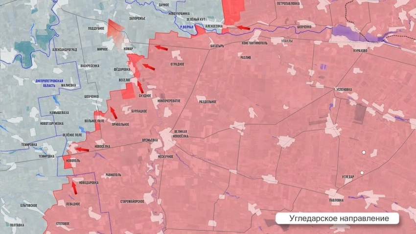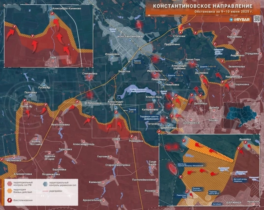 На Дзержинском направлении продолжается продвижение российских сил в Яблоновке. Дроны поражают позиции украинских войск уже в самой Константиновке. В районе Александро-Калиново сохраняется активная фаза боевых действий.