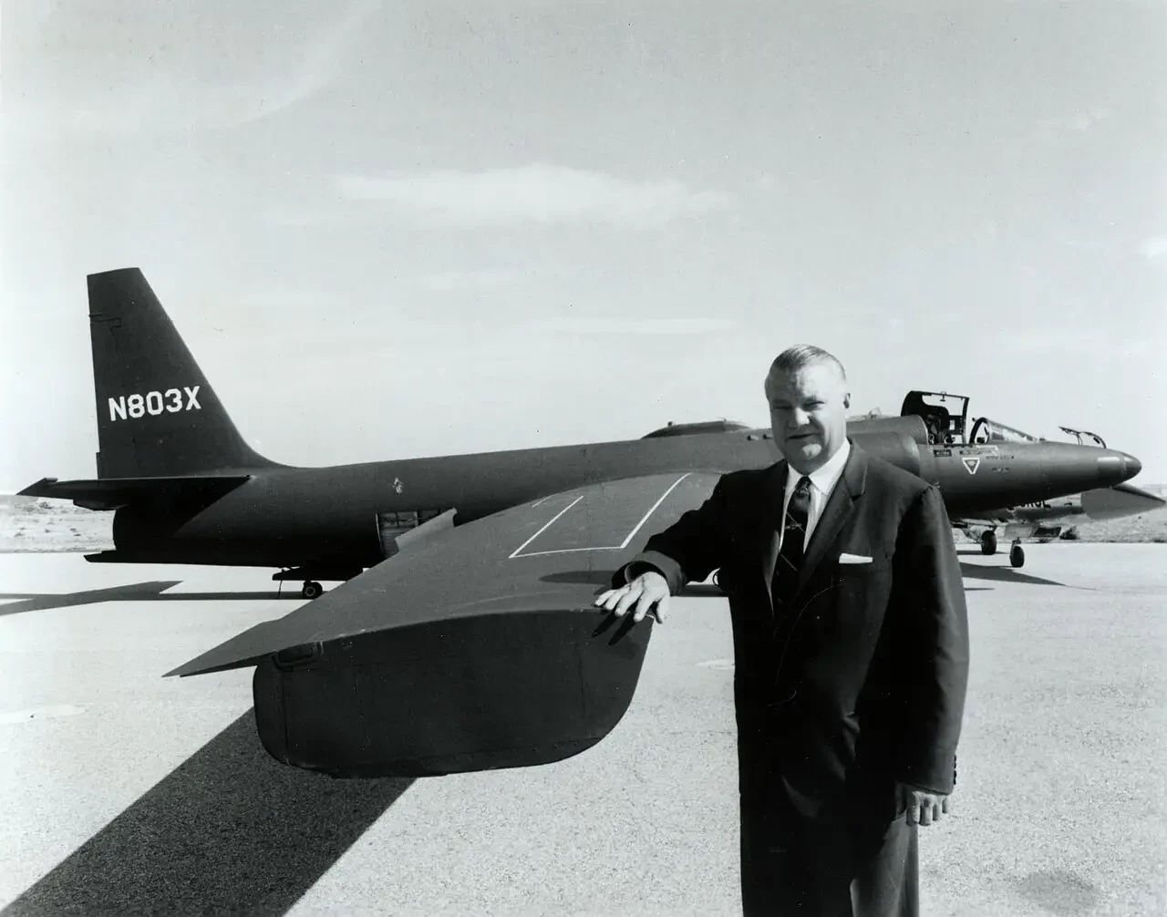 Фото 2. Кларенс «Келли» Джонсон, главный конструктор компании Lockheed Skunk Works, стоит рядом с одним из своих самых успешных и известных проектов самолетов — высотным самолетом-шпионом U-2.