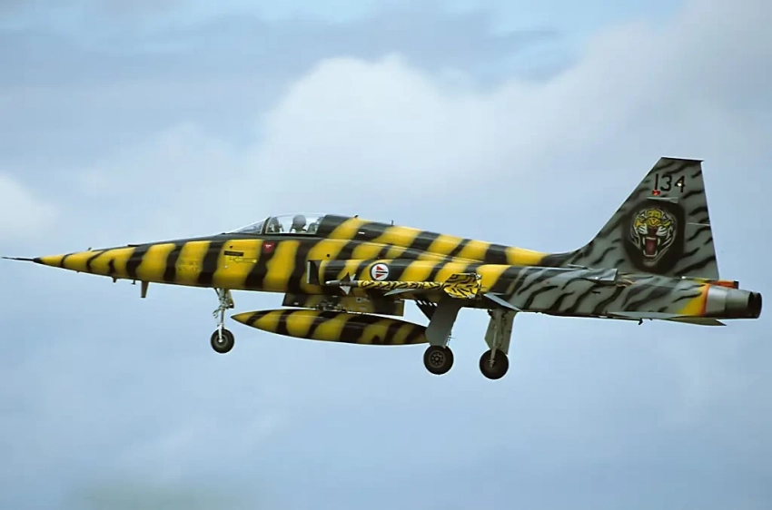 Фото 5. Самолет, «могильщик» проекта истребителя Lockheed CL-1200 во время завершения Международной выставки «истребительной авиации» в 1970 году, Northrop F-5Е, представленный здесь в ярких норвежских цветах НАТО Tiger Meet.