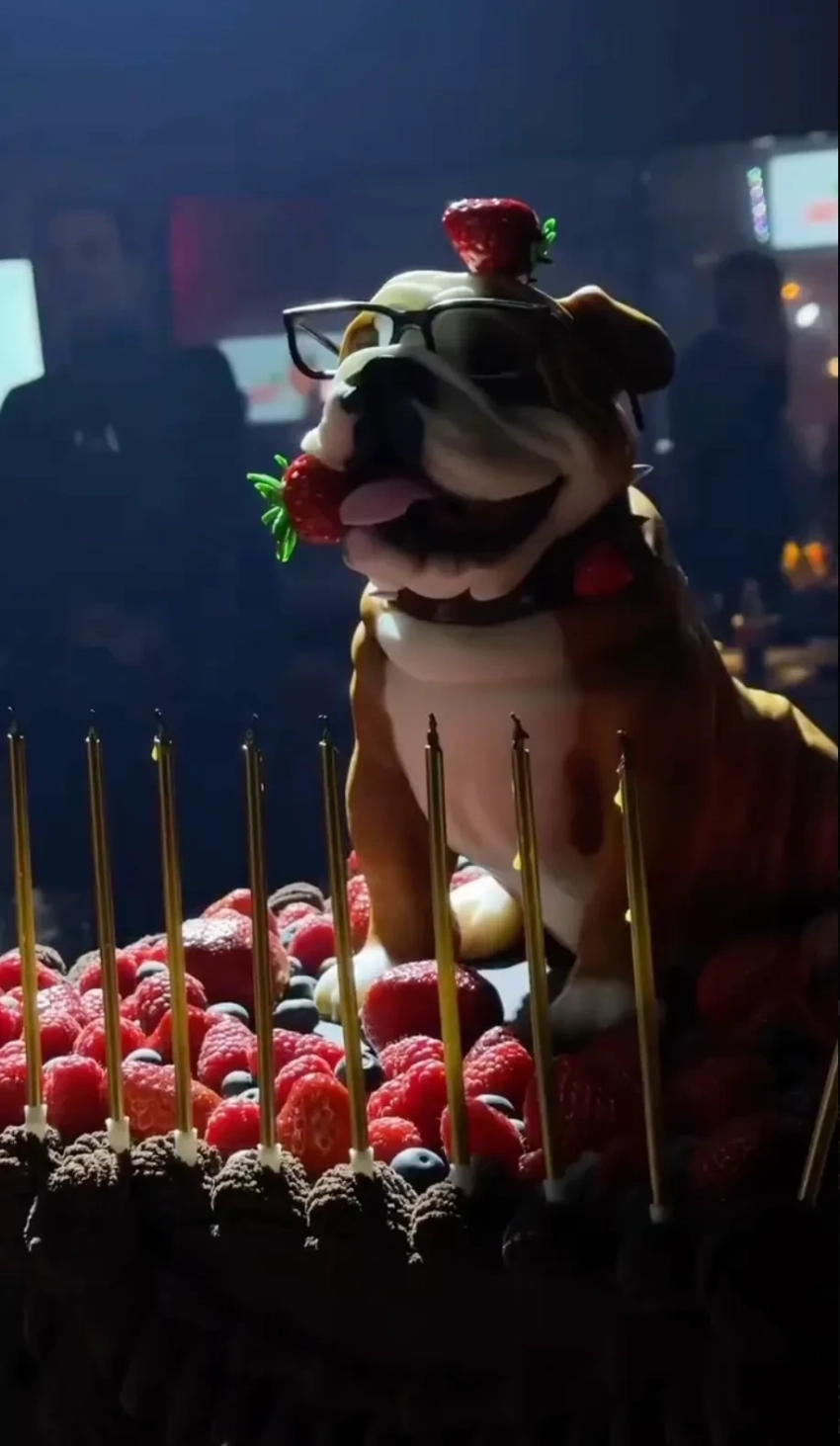 Вечеринка прошла с отсылкой к известной русской поговорке "В 45 баба ягодка опять" — "Харламов — ягодка опять". Интерьер и дресс-код некоторых артистов и гостей были выдержаны в "ягодном" стиле. Необычным оказался и праздничный торт именинника. Он был выполнен в форме собаки породы бульдог: отсылка к сценическому имени артиста — Гарик "Бульдог" Харламов.