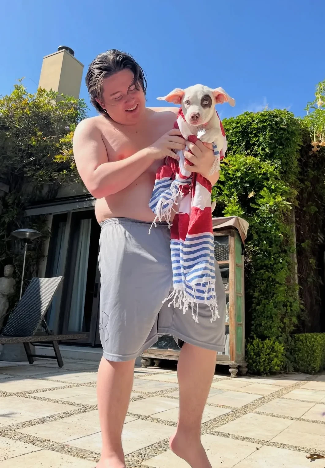 67-летняя актриса Шэрон Стоун показала редкое фото младшего приёмного сына Куинна. 19-летний юноша позировал на фоне собственного дома с собакой по кличке Мо.