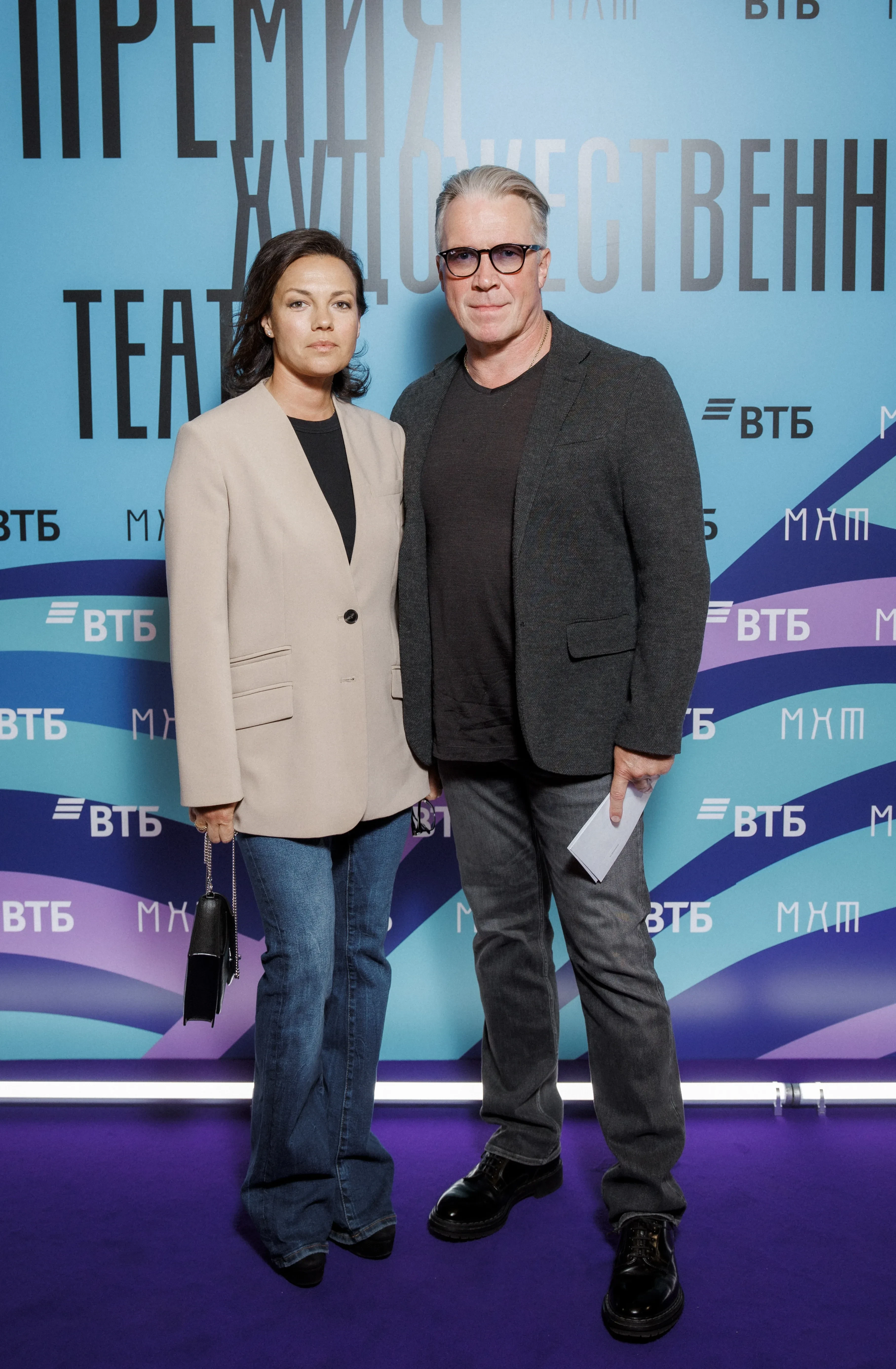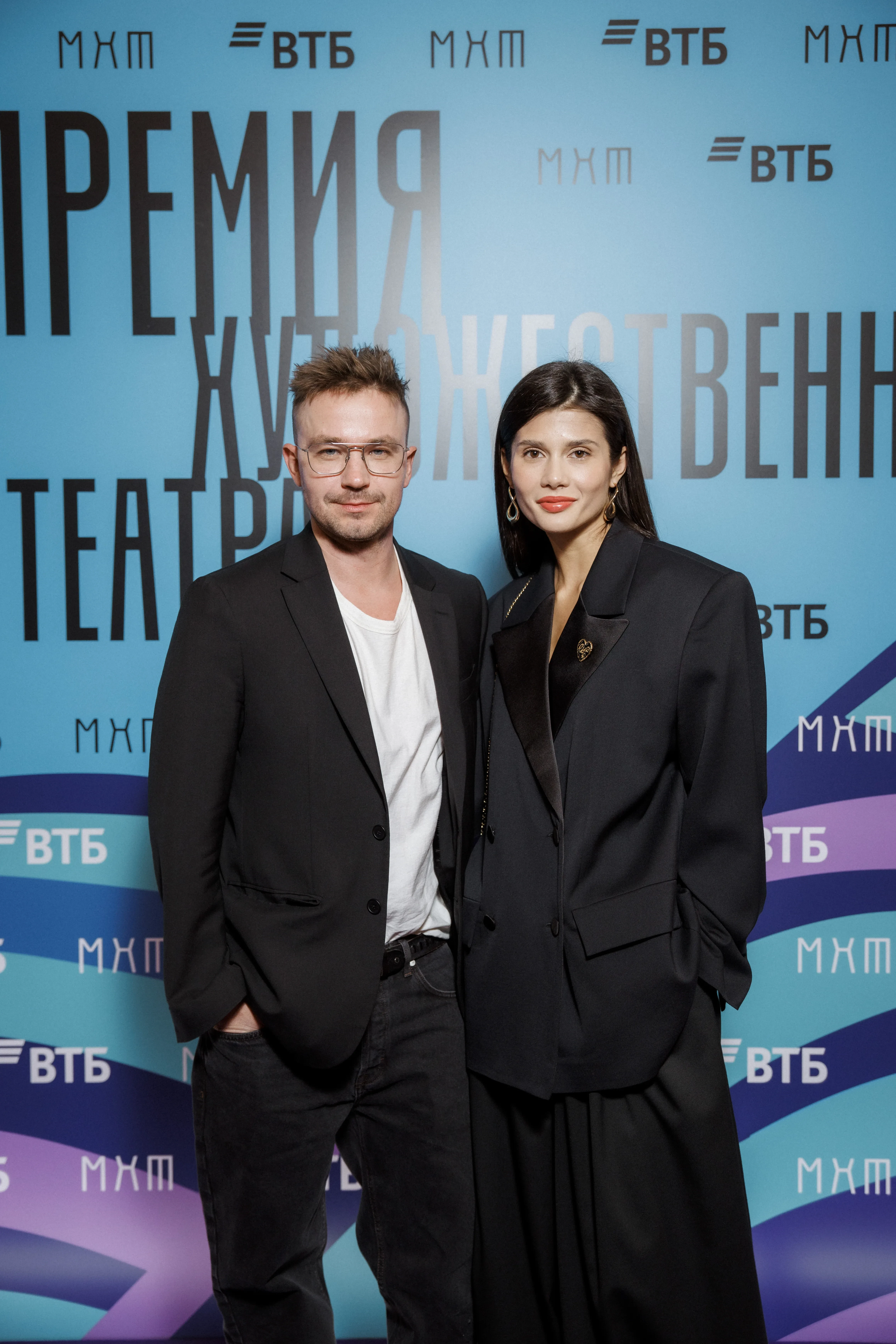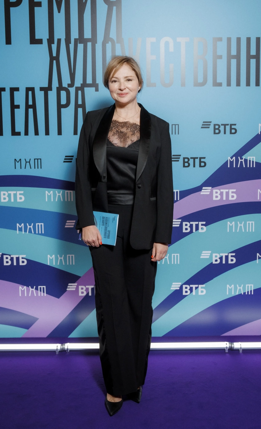 Владимир Хотиненко с женойПремия Художественного театра присуждается молодым деятелям искусств до 35 лет включительно, заявившим о себе в минувшем году. Центральной темой церемонии в этом году стала тема наставников — людей, раскрывающих и направляющих талант молодых дарований.